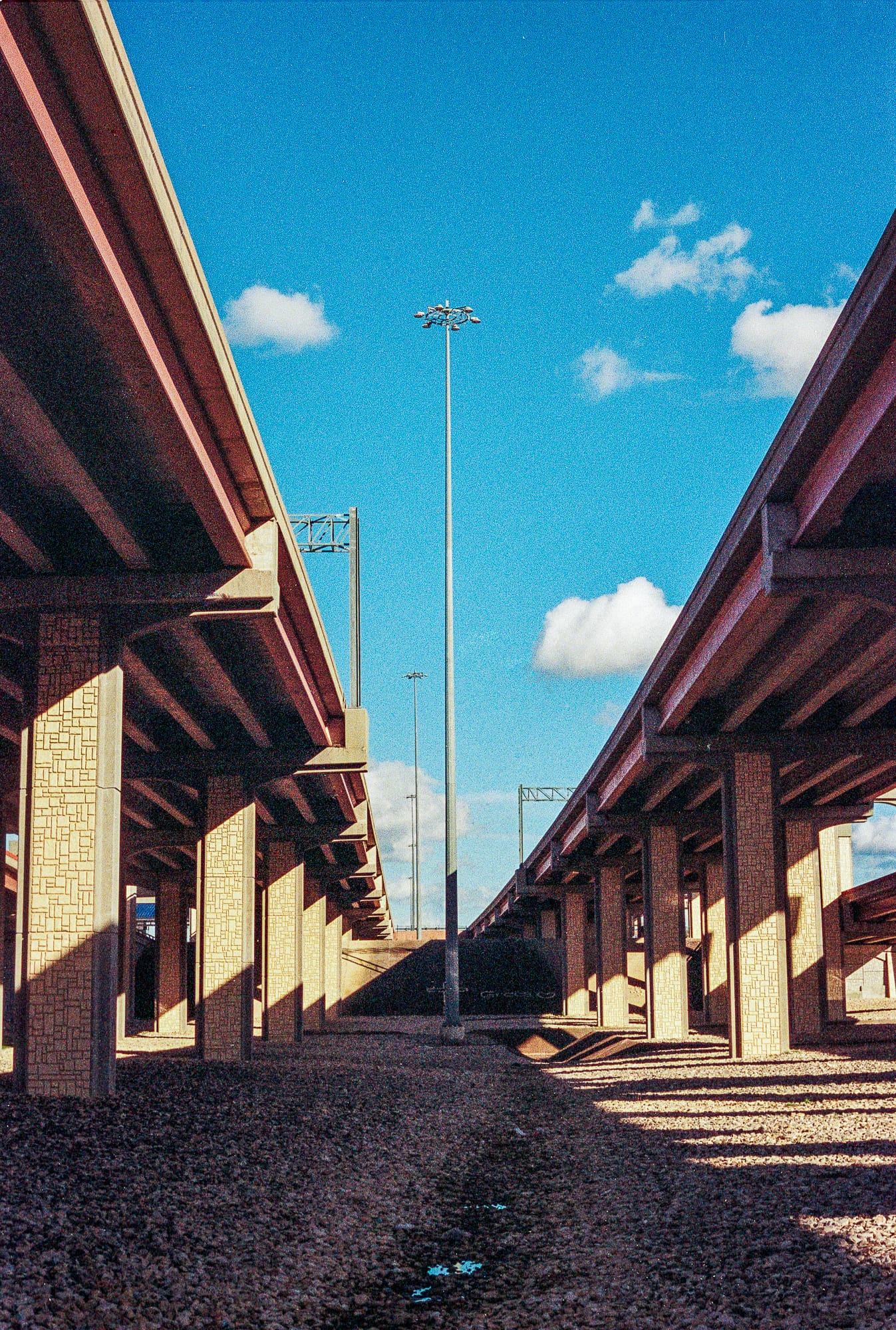 Justice photographs the environments people create — not their ruins, but their structures, arrangements, and patterns. Bridges, overpasses, walls, gardens, monuments, electrical lines: these are the vocabulary of her vision. She observes how we build, alter, and decorate the landscape; how we use nature, depend on it, and push against it. Her photographs examine the choreography between human design and natural order, how geometry and organic form coexist, compete, and sometimes find harmony.